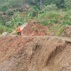 Tebing dengan lebar 8 meter dan tinggi 12 meter ini, mengalami longsor dan mengakibatkan tumpukan tanah serta akar pepohonan menimpa badan jalan, sehingga jalan tertutup dan tidak bisa dilalui oleh kendaraan.