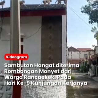 Sambutan hangat di sembut rombongan monyet di Rancaekek Kabupaten Bandung