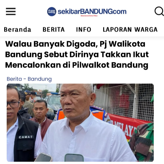 Walaupun banyak digoda, Pj Walikota Bandung Sebut dirinya Takkan ikut mencalaonkan dipilwalkot Bandung
