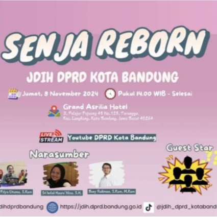 Ia juga menjelaskan di dalam website JDIH DPRD Kota Bandung terdapat beberapa fitur: peraturan hukum, monografi hukum, artikel hukum, infografis dan video grafis.
