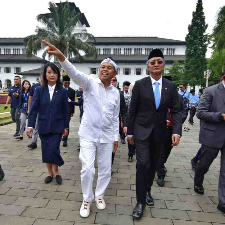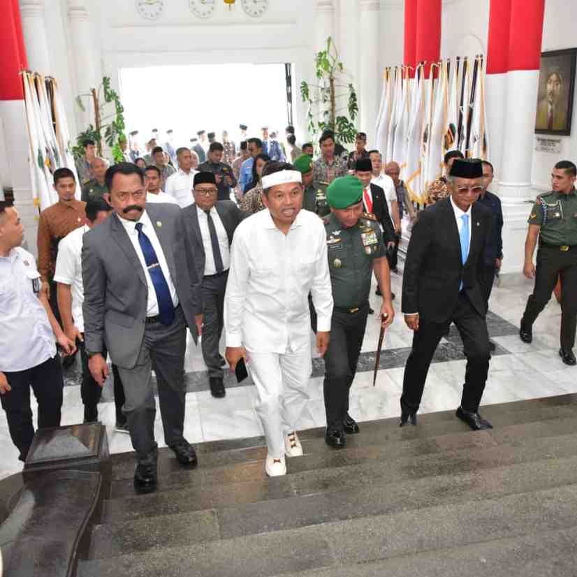 KOTA BANDUNG - Gubernur Jawa Barat Dedi Mulyadi bersama Wakil Gubernur Jawa Barat Erwan Setiawan menghadiri Upacara Hari Bakti ke-80 Pekerjaan Umum yang digelar di halaman Gedung Sate, Kota Bandung, R...