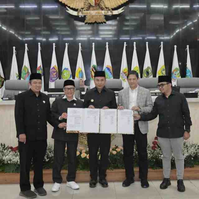 Gubernur Jawa Barat bersama DPRD menyetujui bersama tiga rancangan menjadi peraturan daerah Jawa Barat dalam rapat paripurna di kantor DPRD Jawa Barat, Jalan Diponegoro, Kota Bandung, Jumat (27/12/202...