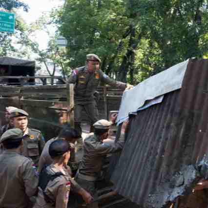 Satuan Polisi Pamong Praja (Satpol PP) Kota Bandung menertibkan satu kios bangunan liar di Jalan Supratman, Kota Bandung, Selasa (7/5/2024).Kepala Bidang Trantibum Satpol PP Kota Bandung Yayan Ruyandi...