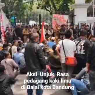 ksi unjuk rasa di Balaik Kota Bandung siang ini, Selasa 12 Desember 2023.Sekira 100 orang pedagang kaki lima jalan Dalem Kaum melangsungkan aksi unjuk rasa di Balaikota Bandung.Aksi ini menyusul infor...