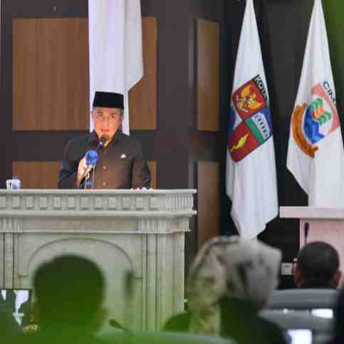 Penjabat Gubernur Jawa Barat Bey Machmudin menyampaikan jawaban atas pandangan umum fraksi-fraksi DPRD Jabar mengenai Rancangan Peraturan Daerah (Ranperda) APBD Provinsi Jabar Tahun 2025.Jawaban disam...