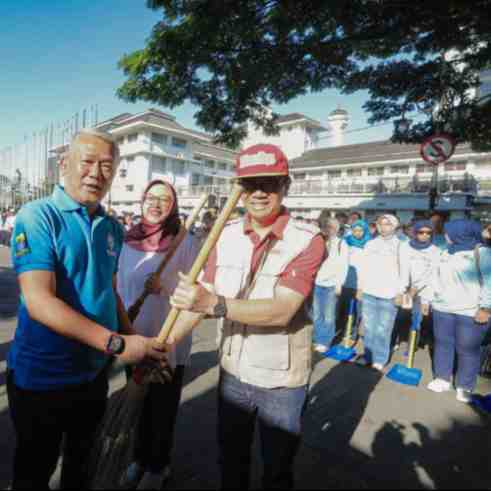 Sekitar 127.000 warga dari berbagai elemen Kota Bandung secara serentak menggelar kegiatan bersih-bersih serentak atau dikenal dengan "Bebersih Bandung" dalam memperingati Hari Jadi ke-214 Kota Bandun...