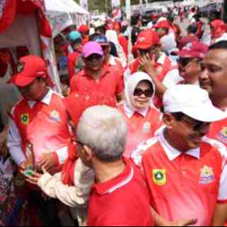 Masyarakat sejak pagi hari berduyun-duyun mengikuti kegiatan semarak Hari Ulang Tahun (HUT) ke-79 Republik Indonesia tingkat Kabupaten Bogor, di Stadion Pakansari.Antusias masyarakat terlihat sejak me...