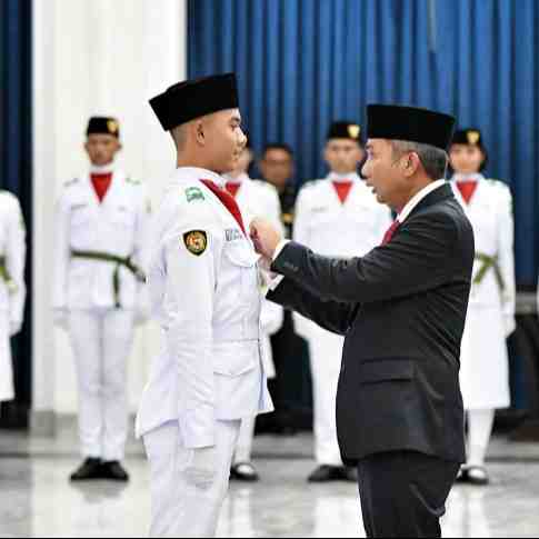Penjabat Gubernur Jawa Barat Bey Machmudin secara resmi mengukuhkan Pasukan Pengibar Bendera Pusaka (Paskibraka) tingkat Provinsi Jabar yang akan bertugas pada upacara HUT Ke- 79 RI yang rencananya di...