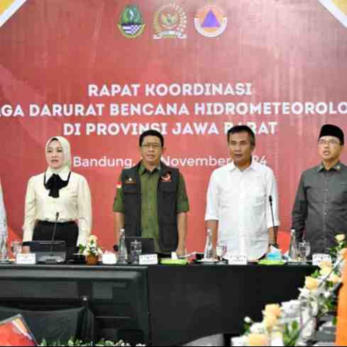 Penjabat (Pj.) Gubernur Jawa Barat Bey Machmudin menghadiri Rapat Koordinasi (Rakor) Siaga Darurat Bencana Hidrometeorologi di Gedung Pakuan, Kota Bandung, Jumat (29/11/2024). Rakor ini bertujuan untu...
