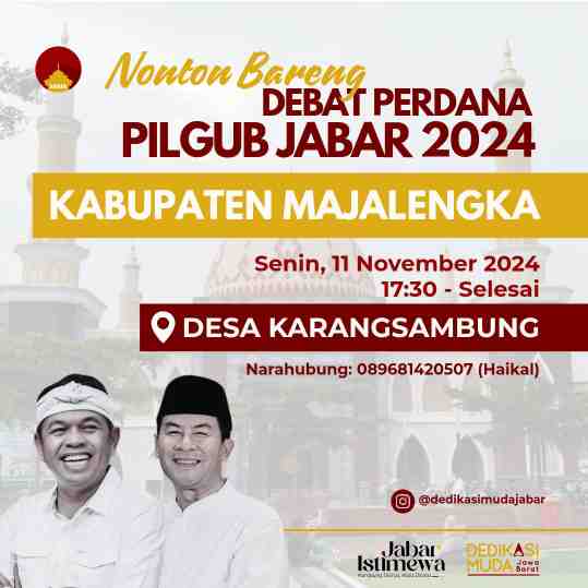 Masyarakat Kabupaten Majalengka antusias menyambut gelaran acara Nonton Bareng debat perdana Pilgub Jawa Barat 2024 yang akan diadakan pada Senin, 11 November 2024. Acara ini akan berlangsung di Desa ...