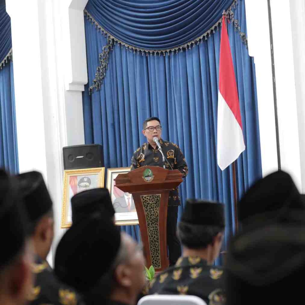 KOTA BANDUNG -- Gubernur Jawa Barat Ridwan Kamil menghadiri pengukuhan Persatuan Anggota Badan Permusyawaratan Desa Seluruh Indonesia (PABPDSI) Jawa Barat di Aula Barat Gedung Sate, Kota Bandung, Seni...