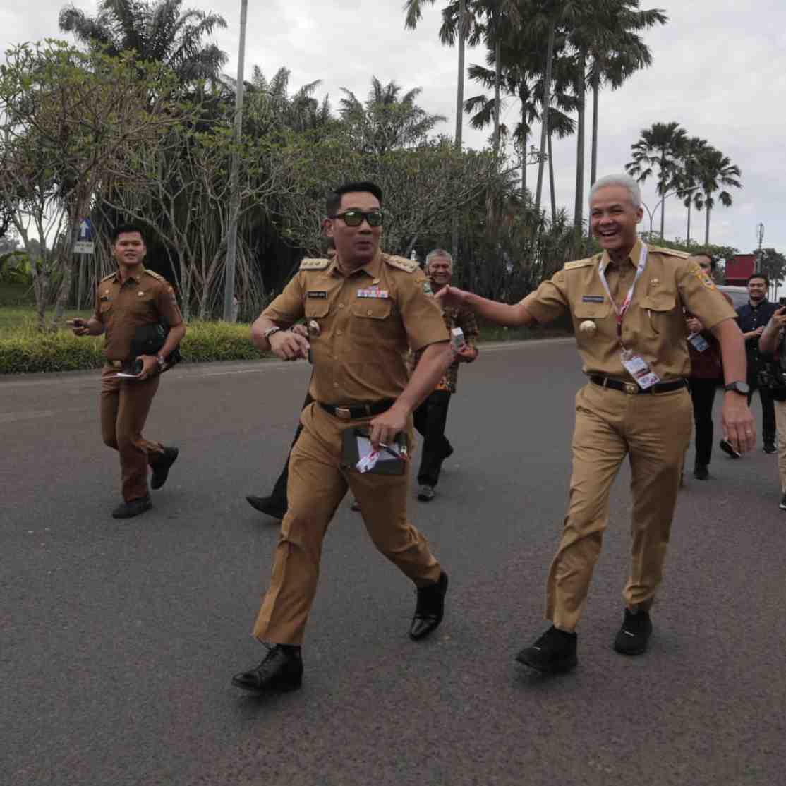 KOTA BOGOR -- Gubernur Jawa Barat Ridwan Kamil terpaksa turun dari kendaraan dan berlari menggunakan pakaian dinas harian (PDH) agar tak terlambat menghadiri Rakornas Kepala Daerah dan Forkopimda se -...