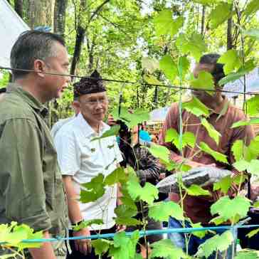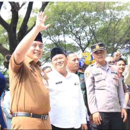 Pj Bupati Bekasi Dani Ramdan mendampingi Pj Gubernur Jawa Barat Bey Machmudin membuka acara Pasar Pasisian Leuweung yang berlangsung di Hutan Kota Eduforest, Kabupaten Bekasi, Minggu (26/5/2024).Acara...