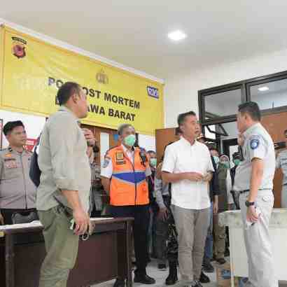 Penjabat Gubernur Jawa Barat Bey Machmudin mendatangi RSUD Karawang untuk melihat kondisi korban kecelakaan di Tol Jakarta - Cikampek (Japek) Km 58, Kabupaten Karawang, Senin (8/4/2024).Kecelakaan mel...