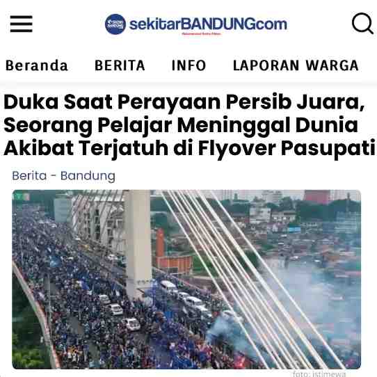 Innalillahi wa innailaihi rojiun,,Seorang pelajar asal Cileunyi, Kabupaten Bandung, meninggal dunia setelah terjatuh dari mobil saat konvoi perayaan di Flyover Pasupati atau Jalan Mochtar Kusumaatmadj...