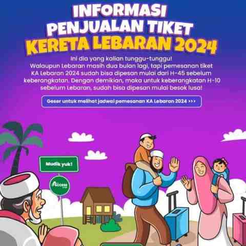 PT Kereta Api Indonesia (KAI) Daop 2 Bandung telah membuka penjualan tiket kereta api pada periode angkutan Lebaran 2024 mulai tanggal 15 Februari 2024 atau H-45 untuk keberangkatan 31 Maret 2024 atau...