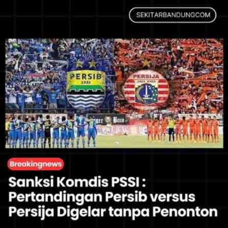 Komisi Disiplin ( Komdis ) PSSI memberikan sanksi kepada Persib Bandung dengan pertandingan tanpa penonton saat melawan Persija Jakarta yang nantinya akan digelar di Stadion Si Jalak Harupat pada 9 Ma...
